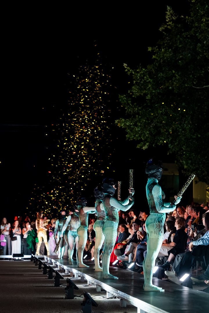 MN Dance Company’s performance added movement, poetry, and energy to the catwalk, merging contemporary dance with sustainable haute couture. Together with Helena Blagne, Silence, KD Šavrini in Anka Šavrinke Gračišče, and a stellar creative team, the evening unfolded as one of the most visionary cultural events of the year.